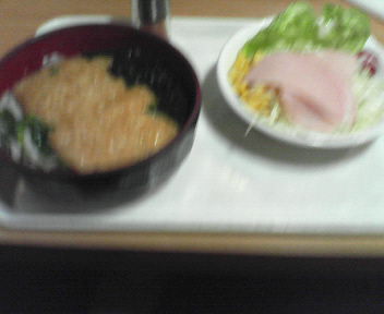 東京最後に食った某ネカフェのうどんとサラダ